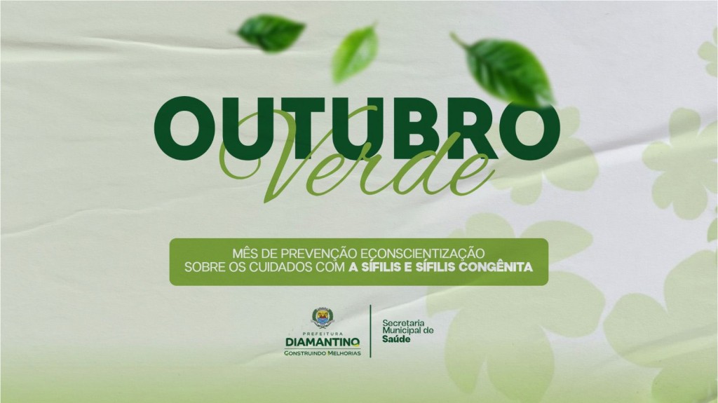 A Prefeitura de Diamantino, por meio da Secretaria Municipal de Saúde, através do Serviço de Atenção Especializada e Centro de Testagem e Aconselhamento (SAE/CTA) dá início à Campanha Outubro Verde, que busca conscientizar a população sobre a importância da prevenção, diagnóstico e tratamento da sífilis e da sífilis congênita.