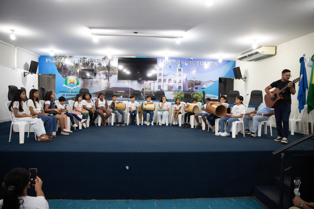 A apresentação aconteceu no plenário da Câmara Municipal e foi conduzida pelos professores Geniel Nascimento e Raimundo Nonato e contou com a participação de 15 crianças.