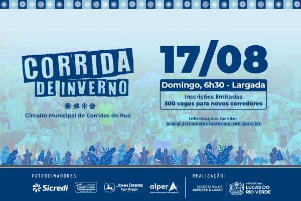 A tradicional Corrida de Inverno será realizada no próximo domingo (17), a partir das 6h30, no Lago Harri Müller, em Lucas do Rio Verde. A prova integra a terceira etapa do Circuito Municipal de Corridas de Rua e deve reunir cerca de 1.300 atletas luverdenses.