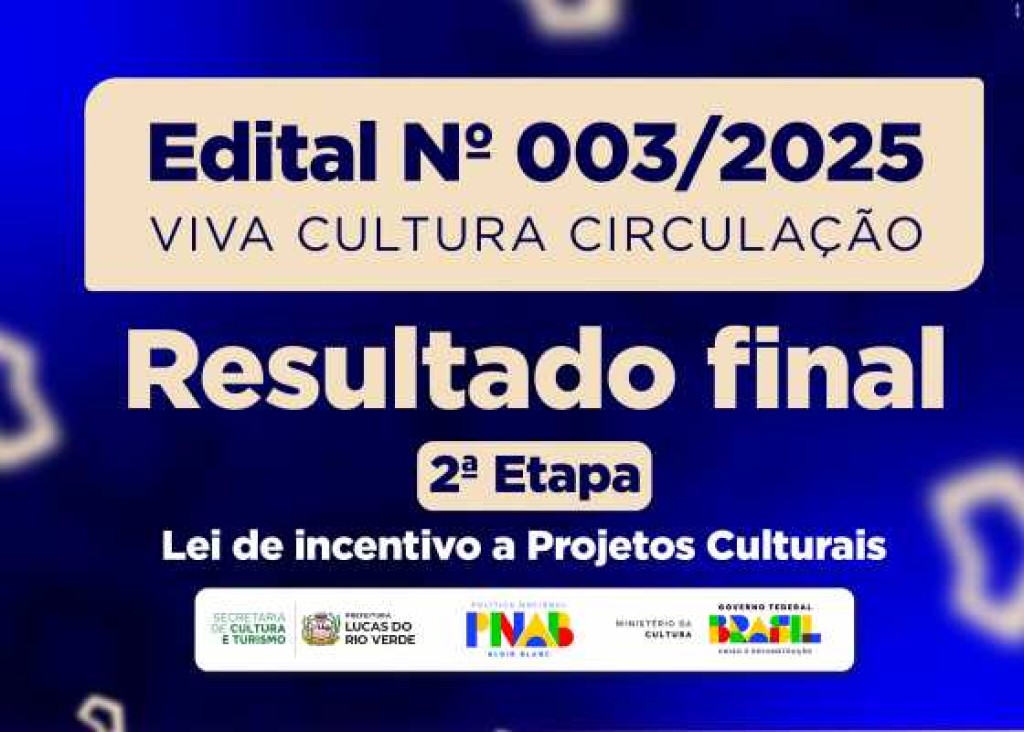 Divulgado o resultado final da 2ª fase do Edital nº 003/2025 da Cultura em Lucas do Rio Verde