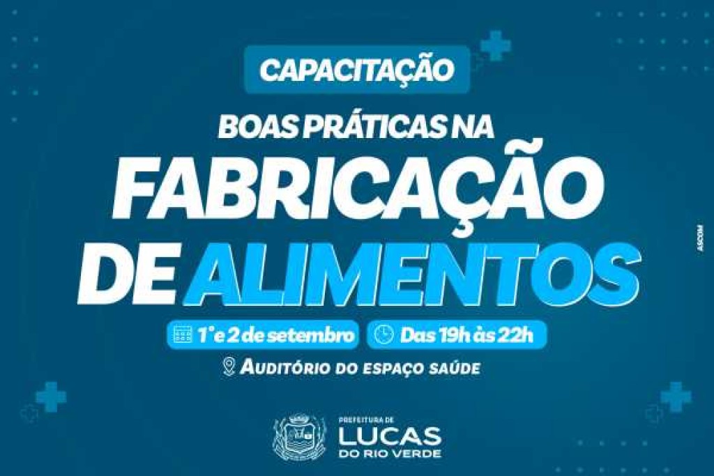 Terminam neste domingo (31), as inscrições para o curso “Boas Práticas na Fabricação de Alimentos”. A capacitação é ofertada pela Prefeitura de Lucas do Rio Verde, por meio da Secretaria Municipal de Saúde.