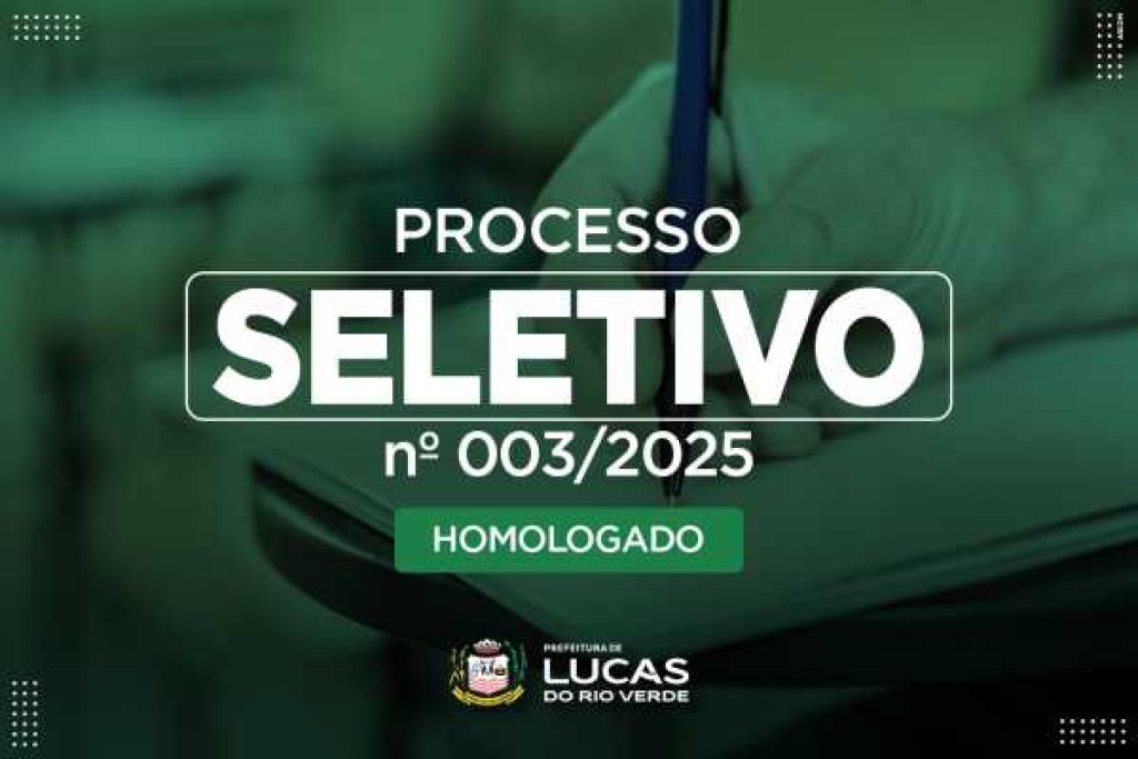 A Prefeitura de Lucas do Rio Verde, por meio da Secretaria de Governo e Administração, informa que já está disponível no site da Selecon (selecon.org.br) o Edital de Homologação, que trata sobre o Resultado Final do Processo Seletivo Simplificado nº 003/2025.