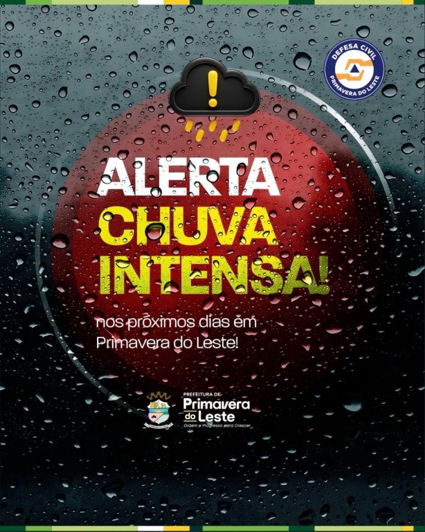 DEFESA CIVIL EMITE ALERTA PARA POSSIBILIDADE DE CHUVAS INTENSAS EM PRIMAVERA DO LESTE