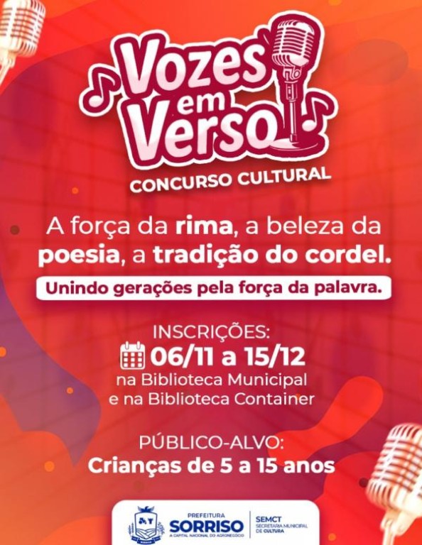 A secretária de Cultura, Marisa Netto, destaca que o projeto “Vozes em Verso” tem como objetivo promover a expressão artística e cultural por meio da literatura e da música, incentivando a criatividade, o talento e a sensibilidade dos participantes. “O Festival busca despertar o interesse pela arte literária e musical, fortalecer o sentimento de comunidade e proporcionar um espaço de partilha de emoções e reflexões, celebrando o espírito natalino de forma criativa e inclusiva”, acrescenta Marisa.