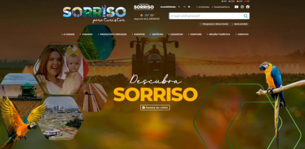 Sorriso dá um passo importante na promoção do turismo local com o lançamento oficial do site www.turismo.sorriso.mt.gov.br/home . A página foi apresentada durante o 1º Fórum Regional do Turismo Agro Sustentável, realizado nos dias 26 e 27 de setembro no Centro de Eventos Sicredi, em Sorriso. O evento reuniu mais de 280 participantes e contou com a presença de autoridades, empresários e representantes do setor turístico regional.