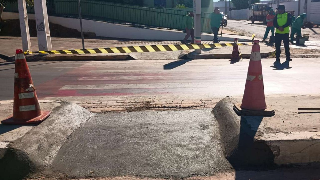 A ação está sendo executada com equipe própria da Secretaria Municipal de Viação e Obras, e contempla a implantação de quatro conjuntos de rampas com dois rebaixamentos cada, além da abertura no canteiro central, facilitando a travessia e o acesso seguro entre as vias.
