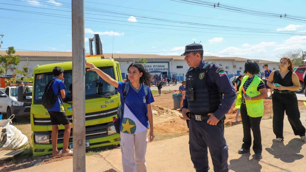 Prefeitura realiza ação educativa e reforça segurança em frente à Escola Estadual José Garcia Neto na Rodovia Mário Andreazza