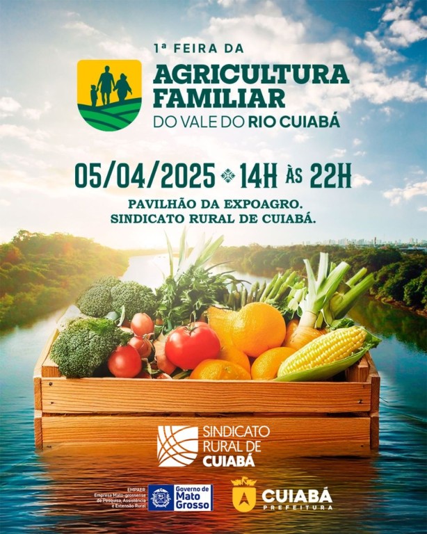 A Prefeitura de Cuiabá, por meio da Secretaria Municipal de Agricultura e Trabalho, realizará a 1ª Feira da Agricultura Familiar do Vale do Rio Cuiabá, em parceria com o Sindicato Rural de Cuiabá, Empaer e Secretaria da Agricultura do Estado de Mato Grosso (SEAF).