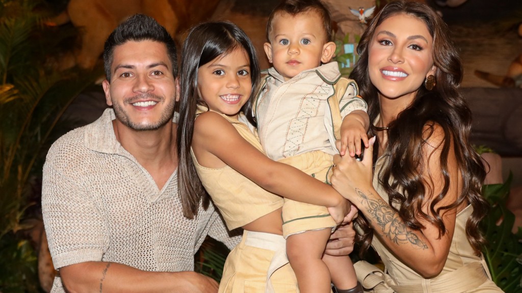 Arthur Aguiar e Jheny Santucci comemoram um ano do filho com festão: ‘O Rei Leão’