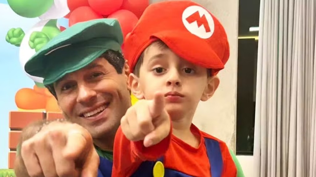 Ator, João Baldasserini e filho viram Luigi e Mario em festa de aniversário: ‘games’