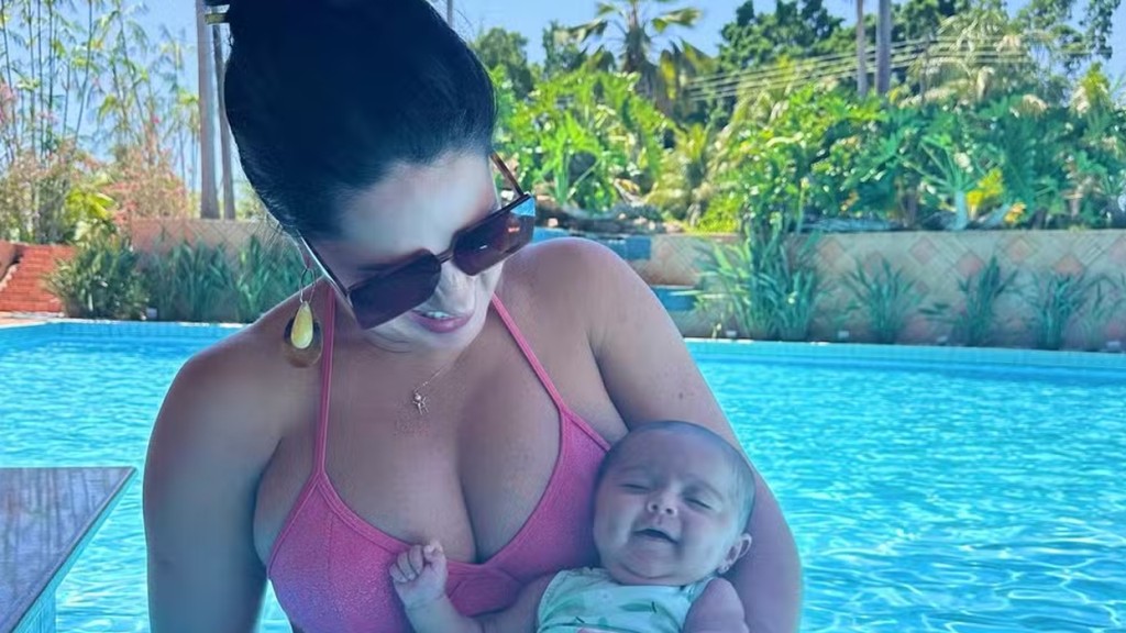 Graciele Lacerda curtiu o domingo (9), ensolarado em Goiás na piscina da fazenda É o Amor com a família. A musa fitness colocou, pela primeira vez, um biquíni em Clara, sua filha da união com Zezé Di Camargo. Ela mostrou, ainda, sua silhueta dois meses após o parto, realizado no Natal de 2024.