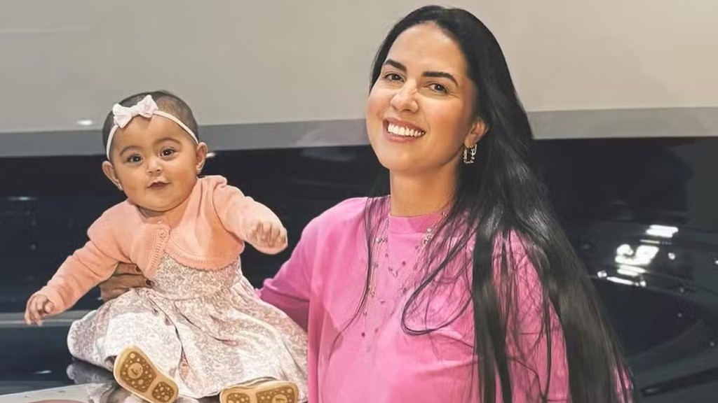 Graciele Lacerda e a filha Clara embarcam para acompanhar Zezé em turnê: ‘Indo ali’