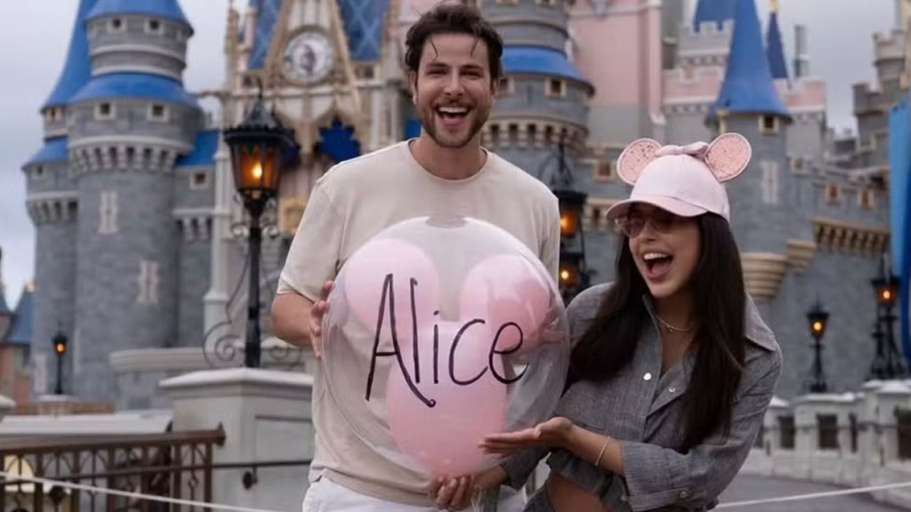 Nas imagens, o casal aparece de mãos dadas enquanto caminha por um dos parques da Walt Disney World Resort, em Orlando, nos Estados Unidos. “O nome da nossa princesa é Alice”, escreveram eles na legenda da publicação.