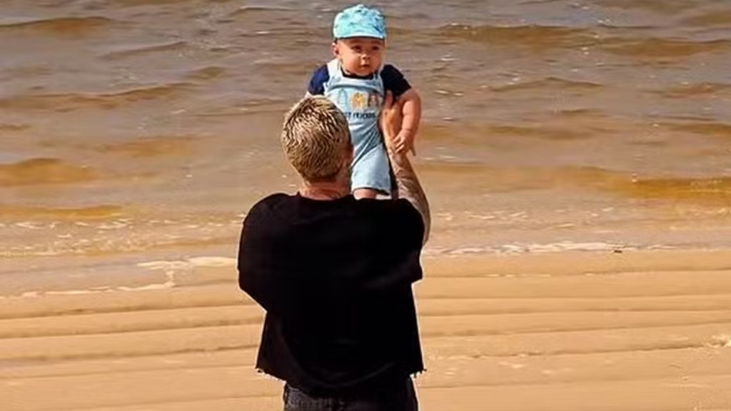MC Daniel leva o filho Rás de 4 meses pela primeira vez à praia: ‘Maceió, Alagoas’