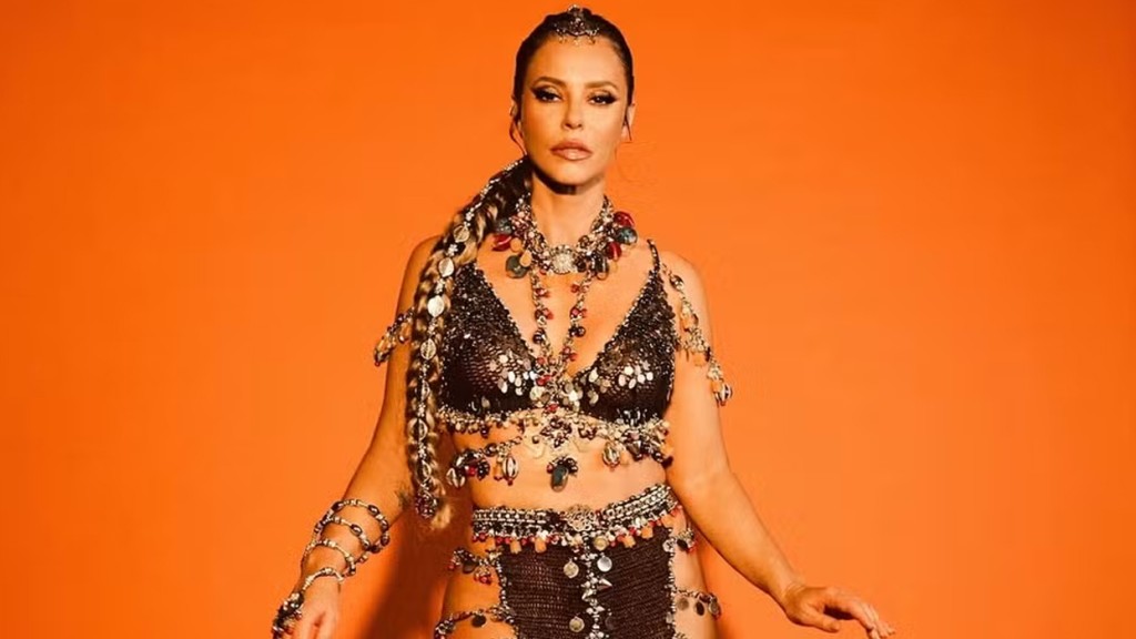 Paolla Oliveira surge de topless durante preparação para ensaio da Grande Rio