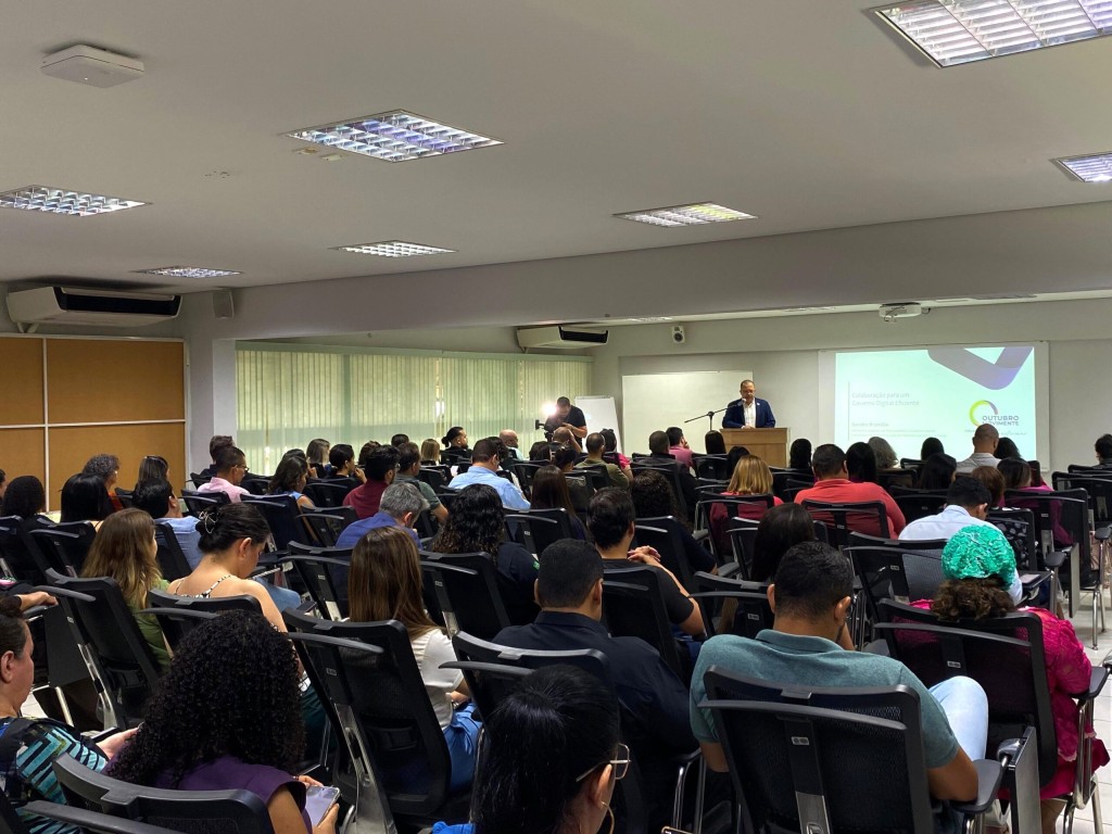 A palestra “Colaboração para um Governo Digital Eficiente” foi ministrada pelo secretário adjunto de Planejamento e Governo Digital da Seplag, Sandro Brandão. O evento, realizado na Escola dos Servidores do Poder Judiciário, também contou com o show da humorista Eloá Pimenta, que interpretou a personagem “Cotinha Cuiabana”.