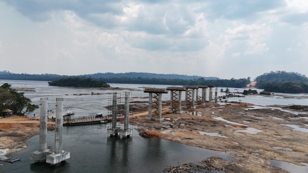 Com 1.360 metros de extensão, a maior ponte de concreto de Mato Grosso está sendo construída sobre o Rio Juruena, entre os municípios de Cotriguaçu e Nova Bandeirantes. A obra segue em andamento, com cerca de 30% do seu total executado.