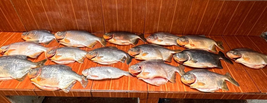 Um freezer com 16 quilos de pacu abaixo da medida permitida por lei e um exemplar de piraputanga, cuja pesca é proibida, foi localizado durante inspeção em um rancho. A equipe lavrou o auto de infração com multa de R$ 13,3 mil ao proprietário do local e apreendeu o pescado, petrechos de pesca proibidos, 2 tarrafas e 1 espingarda de pressão encontrados no local.