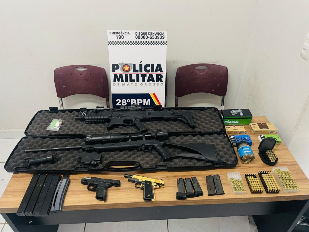 Policiais militares do 28º Batalhão de Jaciara apreenderam, neste sábado (23.11), quatro armas de fogo, 462 munições e dez carregadores. Um homem, de 32 anos, foi detido em flagrante.