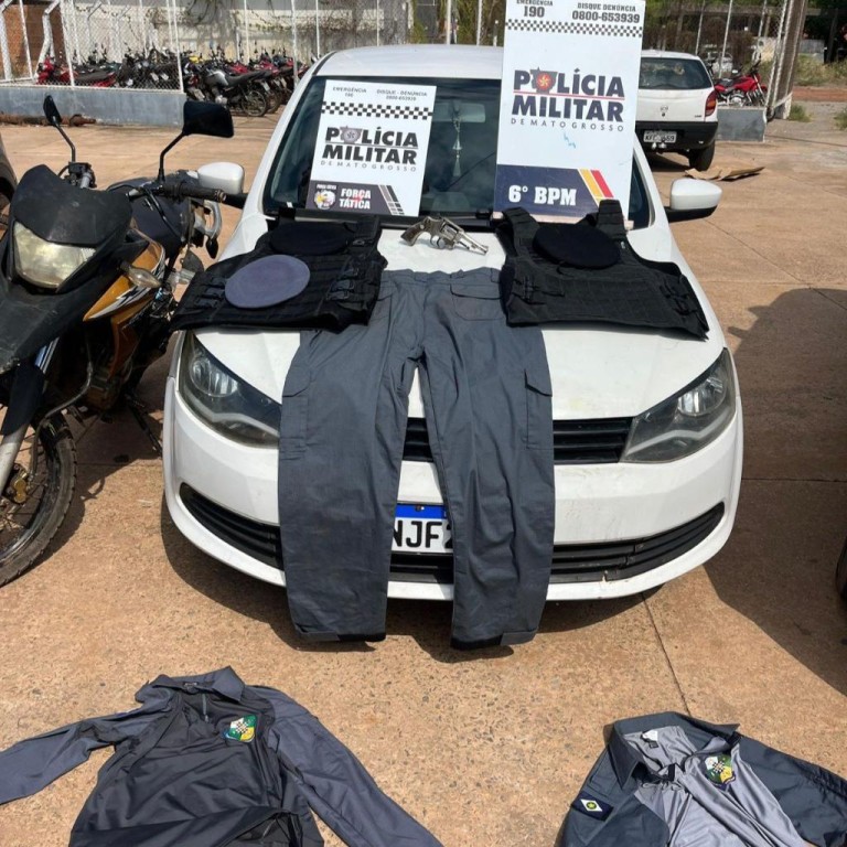 Com apoio da inteligência, os policiais identificaram um carro modelo HB20 usado no crime. O motorista foi abordado em um trecho da Estrada da Guarita, em Várzea Grande. Com ele, os militares encontraram um par de alianças e brincos da vítima.