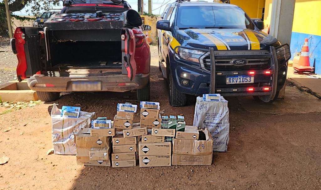 A apreensão incluiu munições de calibres 20, 22, 24, 28, 32, 36, 38 e 44-40, totalizando 14.713 unidades. As munições estavam escondidas dentro do equipamento de som do veículo e sem a documentação necessária, configurando crime previsto no Estatuto do Desarmamento.