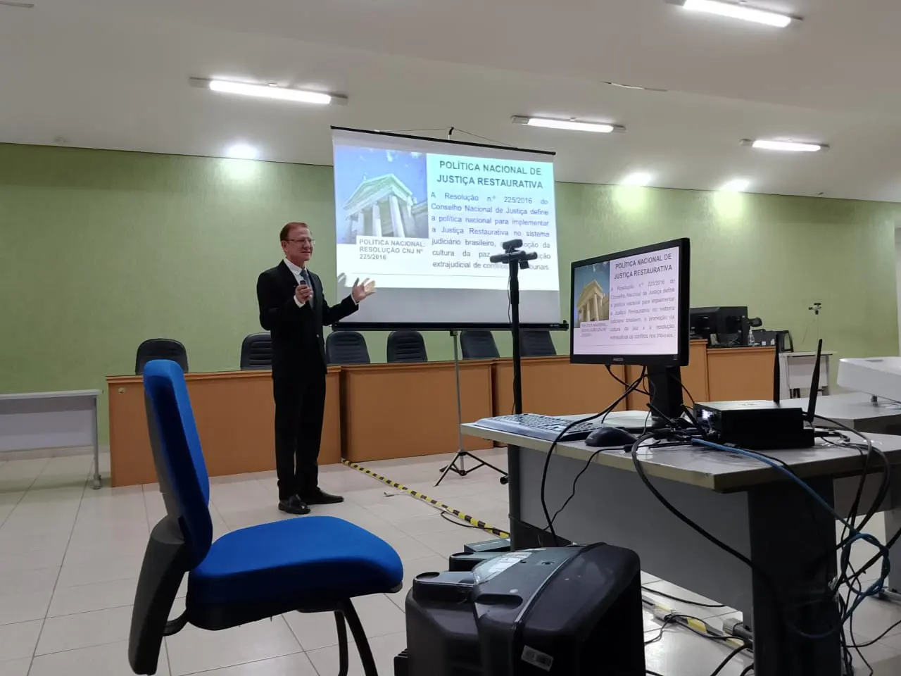 O juiz Wanderlei Reis, coordenador do Cejusc, destacou que a Justiça Restaurativa é um método pacífico e colaborativo de resolução de conflitos, cuja essência está em focar na reparação do dano e na restauração das relações, de maneira que essa abordagem transforma potencialmente a resolução de conflitos ao focar nas necessidades humanas e em soluções construtivas.